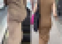 白のタイトスカートを履き、同色スーツを着て前後のパンティラインチェックを行います。黒ヒールを履き職場へと出発です。