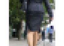 高身長かつお尻の大きさをさらに強調するタイトスカート!膝上の丈のスカートとやけに深いスリットで美脚を見せつけています。そんなOLさんが同僚と一緒に何やら急いでいる様子…こちらも同行を試みます。