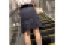 スカートがずり上がってパンストのランガードが見えるほど露出しています。