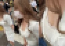 ふわふわした薄手のワンピースを着たお姉さま。インナーを履き忘れたのか可愛らしいパンティーが歩く度にちらちら透けています。