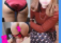 極薄生地のベージュパンツからは黒色のTバックラインが透け透け。