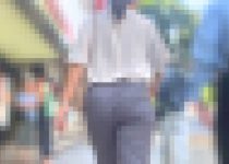 ベージュパンツ姿のOLさん。