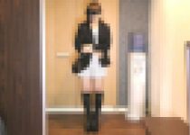 そしてフィニッシュは、スカートの上にたっぷりと濃厚なぶっかけ。